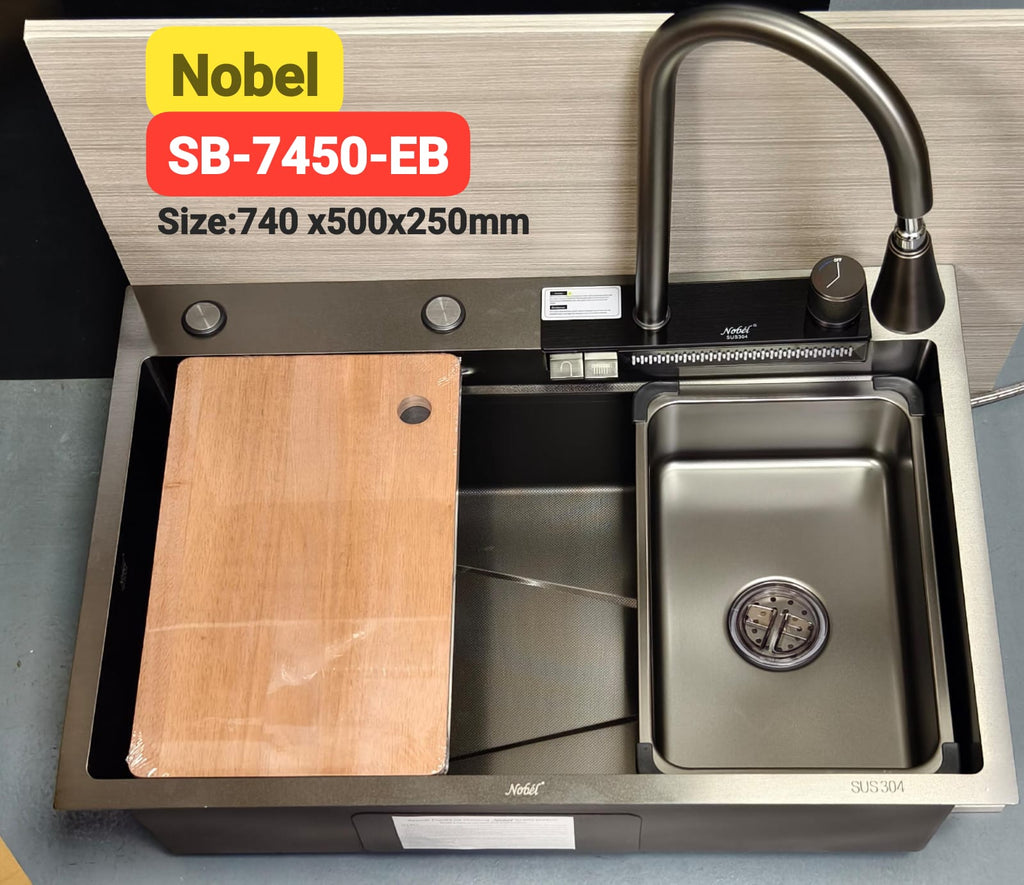 NOBEL Kitchen Sink + Waterfall SB-7545 Embossed Nano Piano Design